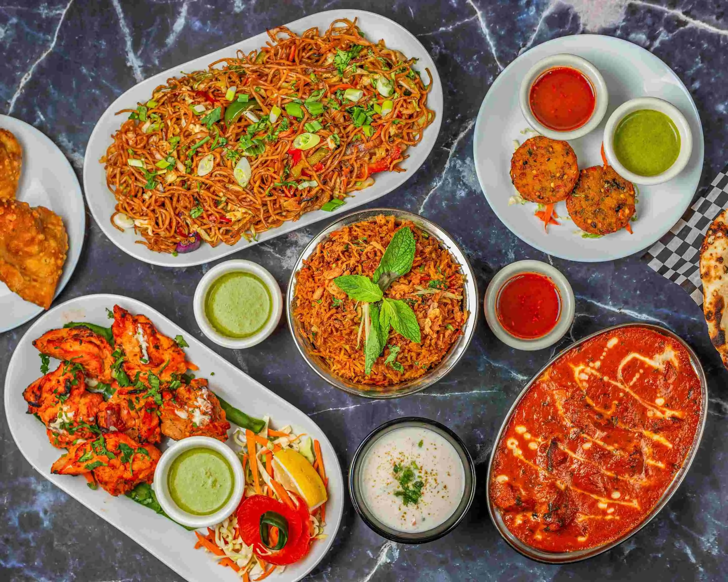 The restaurant specializes in genuine Indian food sourced from authentic recipes and traditional preparation methods. Our menu includes popular North Indian dishes such as tandoori specialties cooked in a traditional clay oven, rich curries, fragrant biryanis, and creative Indo-Chinese fusion dishes. We pride ourselves on using quality ingredients and maintaining authentic flavors that reflect the diverse culinary heritage of India.